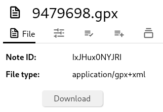 | In order for the file to be recognized as a GPS track, it needs to show up as `application/gpx+xml` in the _File type_ field. | | 3 |