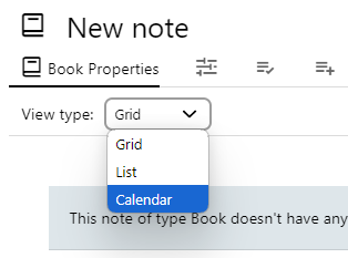 | 1 |  | The Calendar View works only for Collection note types. To create a new note, right click on the note tree on the left and select Insert note after, or Insert child note and then select _Collection_. |