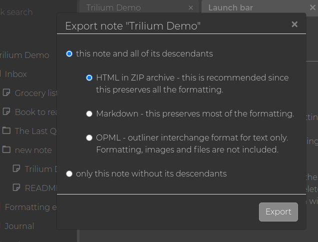 ### Exporting note subtree for reproduction