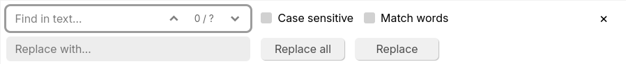 * _Case sensitive_ – the search will distinguish upper case characters from lower case (e.g. searching for Hello will not match `hello`).