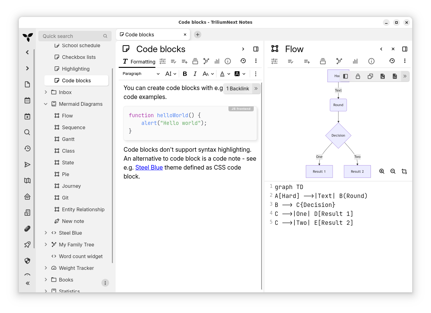 Clicking on the content of a split will focus that split. While focused, the Note Tree will also indicate the note that is being edited.