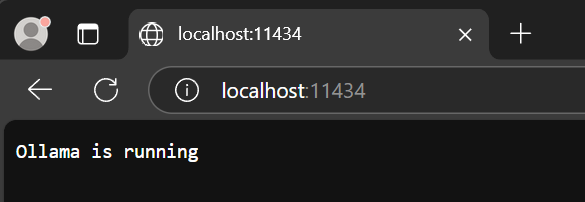 Also, you can make sure it's running by going to http://localhost:11434 and you should get the following response (port 11434 being the “normal” Ollama port):