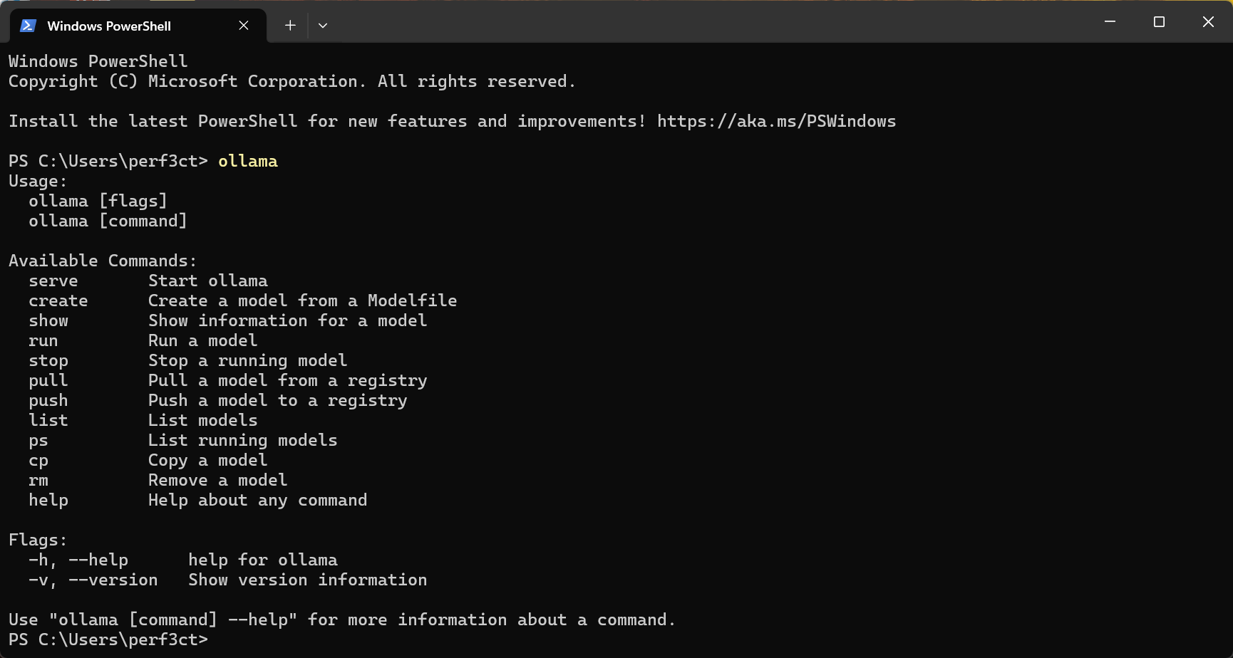 Also, you should have access to the ollama CLI via Powershell or CMD: